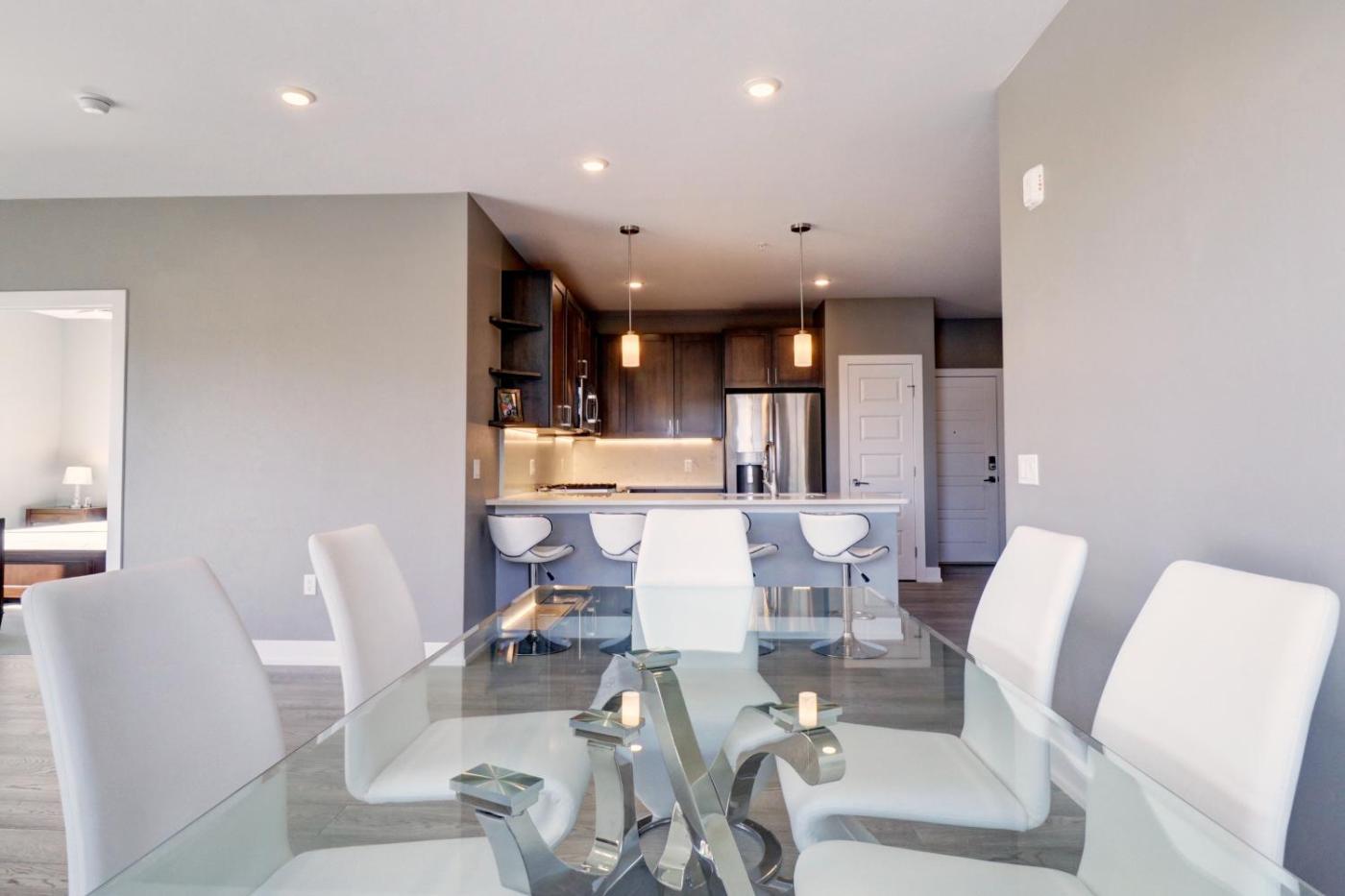 Two-Bedroom Apartment. The fireplace is the standout feature of this apartment. This apartment features 1 living room, 2 separate bedrooms and 2 bathrooms with a bath and free toiletries. Guests will find a refrigerator, a dishwasher, kitchenware and an oven in the well-equipped kitchen. The apartment also comes with a barbecue. The apartment is furnished with a desk and a seating area and features a tea and coffee maker, a dining area and lake views. The unit has 3 beds.
