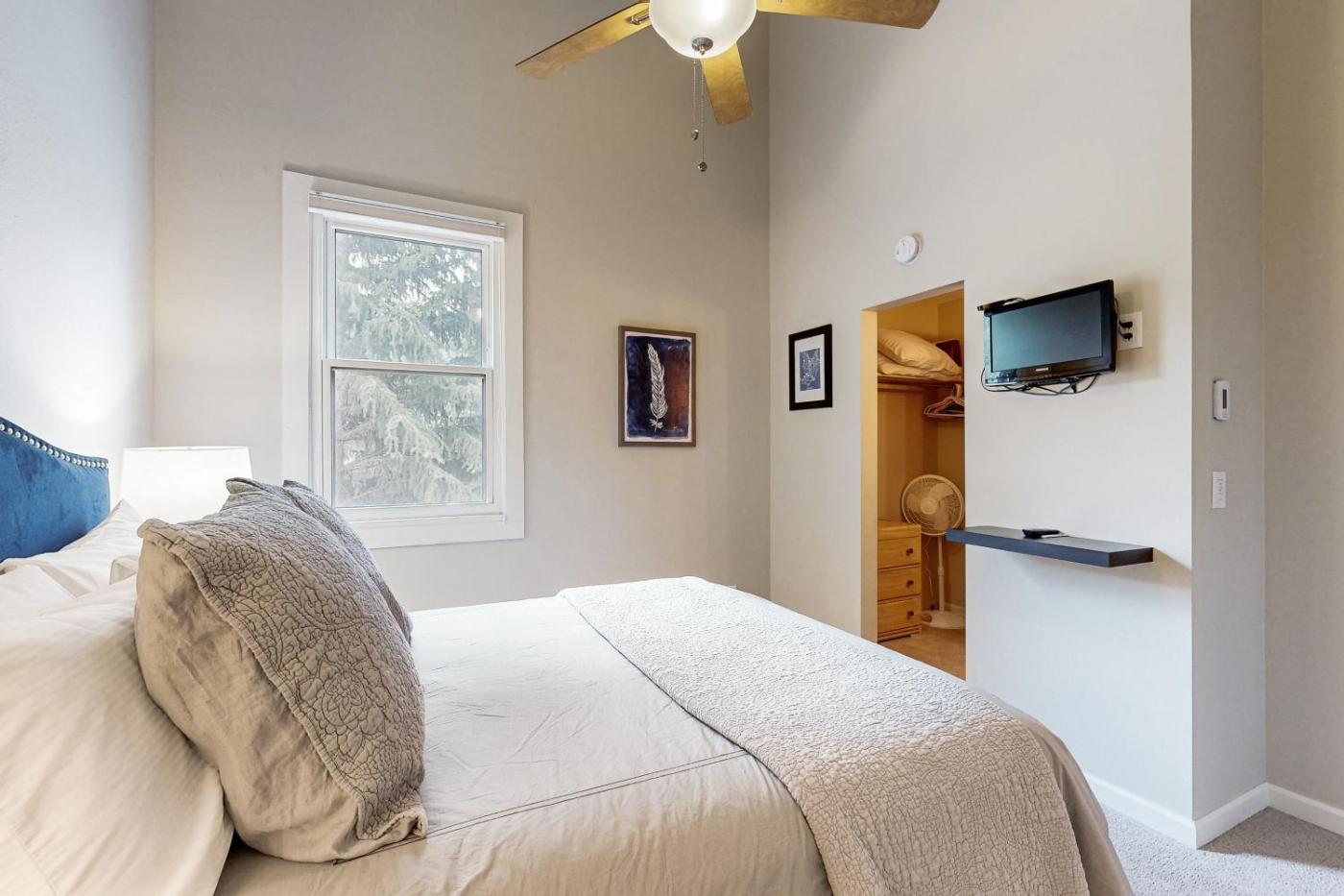 Two Bedroom Apartment. Guests will have a special experience as this apartment offers a fireplace. This spacious apartment is comprised of 1 living room, 2 separate bedrooms and 1 bathroom with a hairdryer and free toiletries. Guests will find a stovetop, a refrigerator, a dishwasher and kitchenware in the kitchen. The apartment also has a barbecue. This apartment features a washing machine, a private entrance, a TV with streaming services and a patio. The unit offers 4 beds.