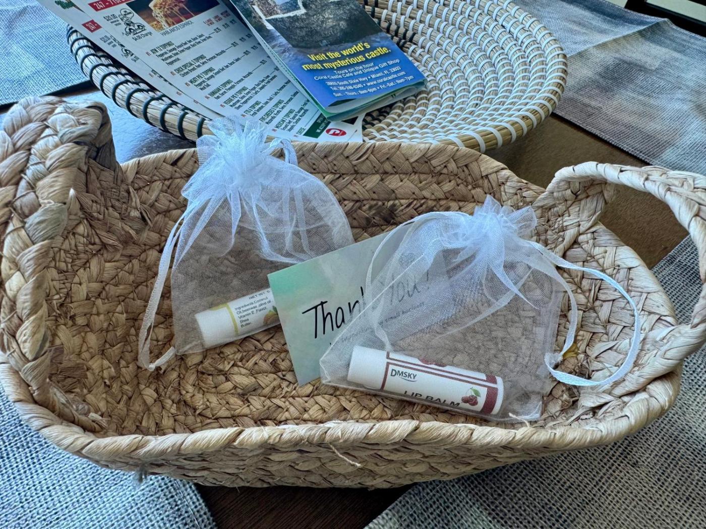 Shared stationery such as printed menus, magazines, pens, and paper removed