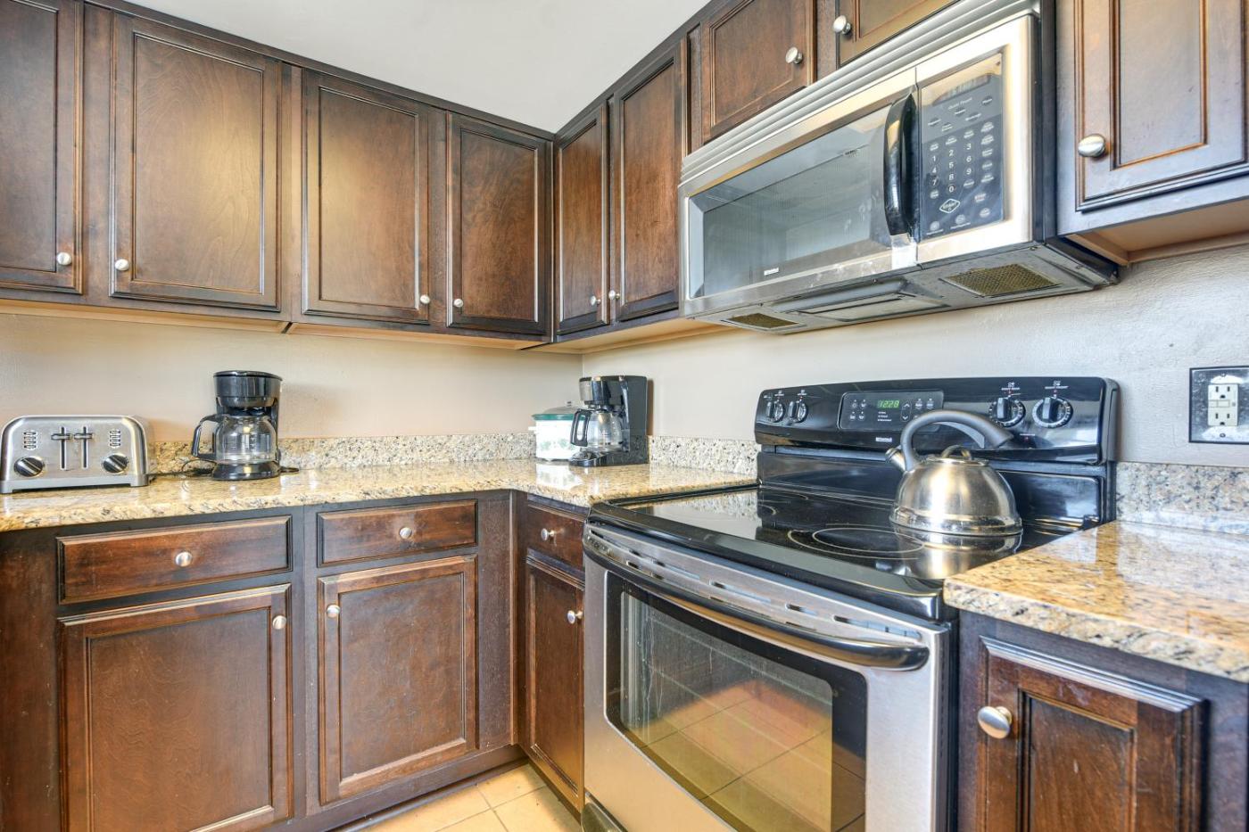 The apartment conveniently has an outdoor pool.
