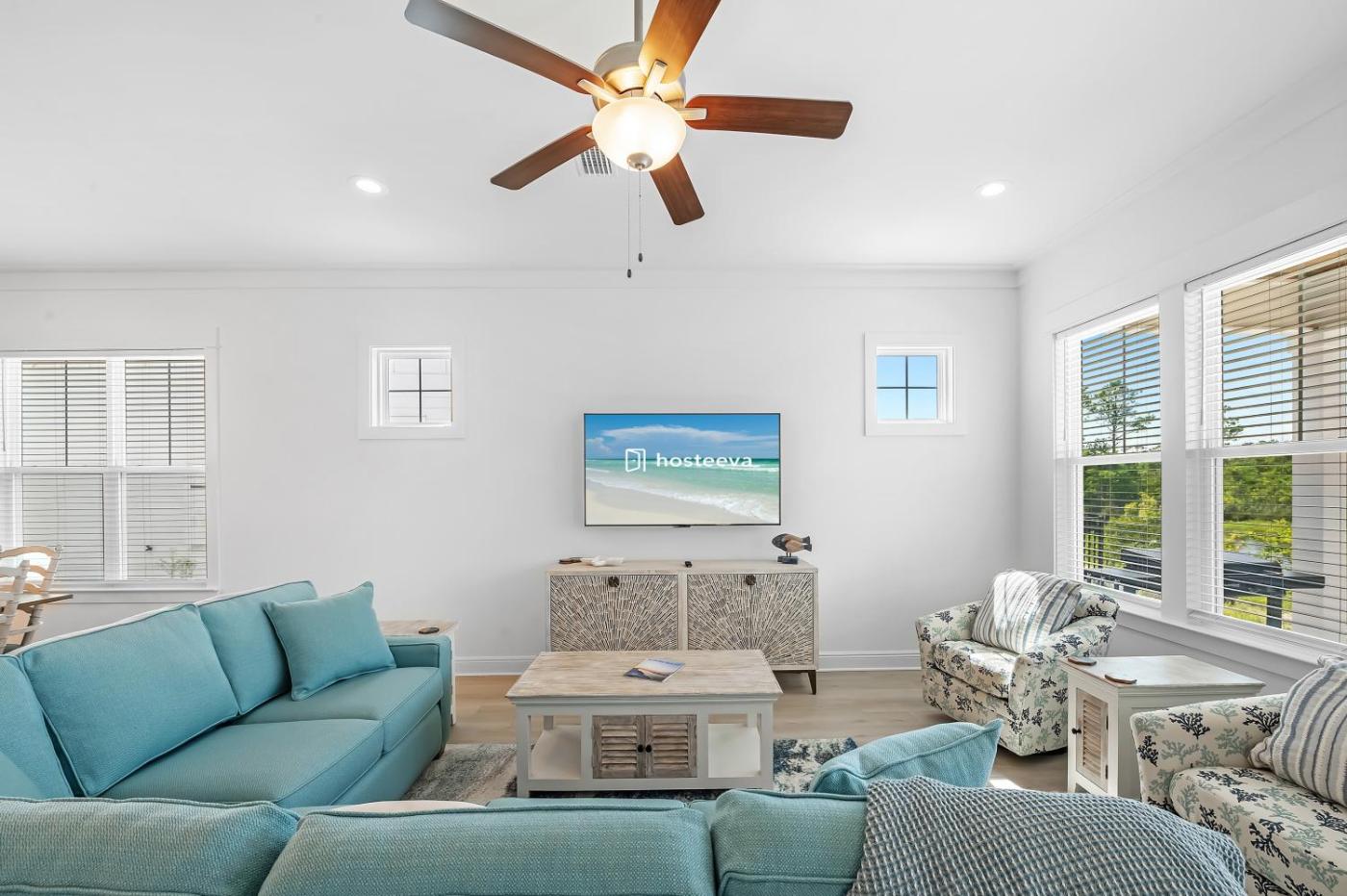 Four-Bedroom Holiday Home. Boasting a private entrance, this air-conditioned holiday home includes 1 living room, 4 separate bedrooms and 4 bathrooms with a bath and a shower. In the kitchen, guests will find a stovetop, a refrigerator, a dishwasher and kitchenware. A seating area with a flat-screen TV, a washing machine and a patio are offered in this spacious holiday home. The unit has 8 beds.