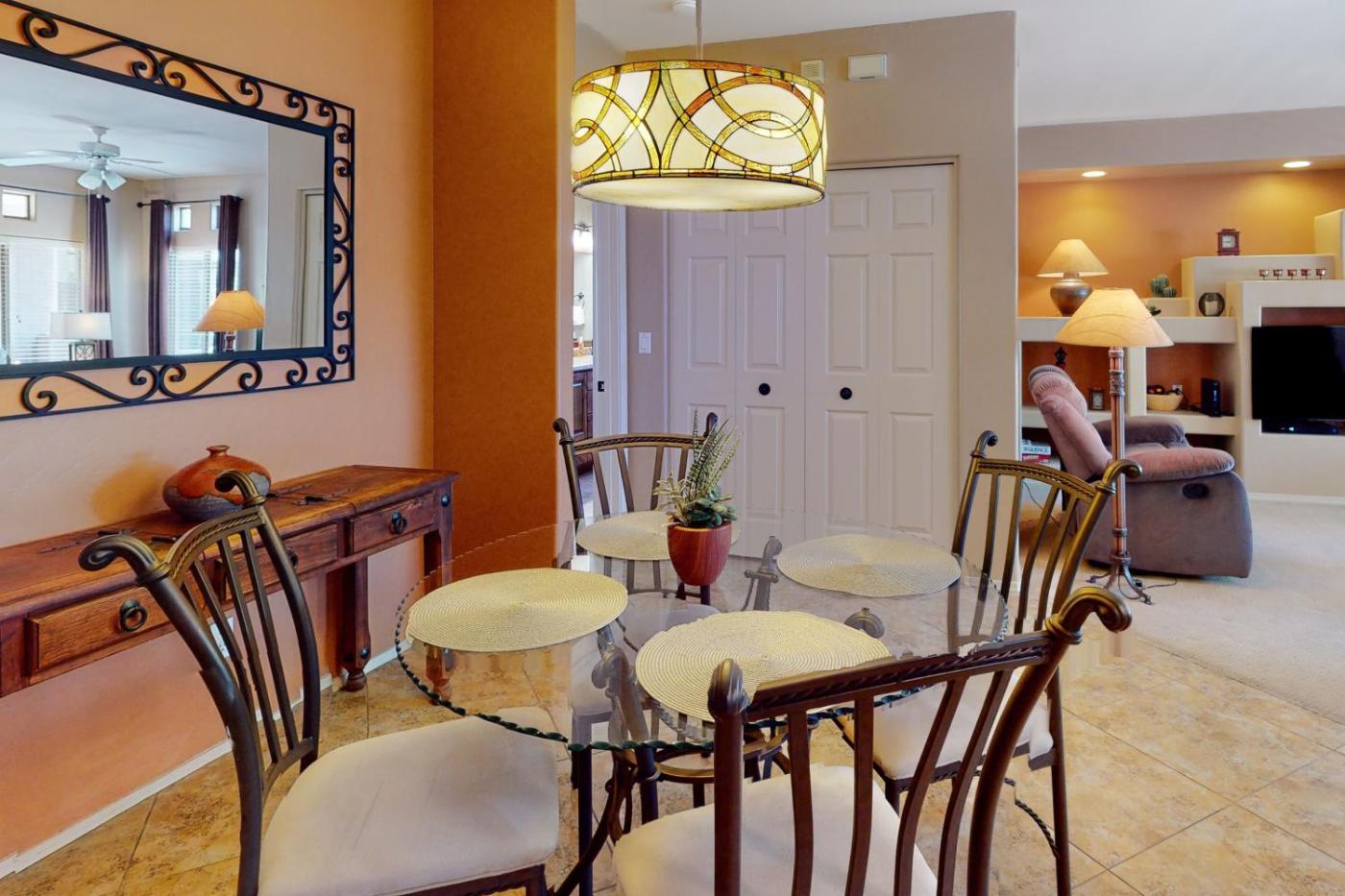 Situated in Oro Valley, 28 km from Tucson Convention Center and 29 km from Arizona Stadium, Vistoso Resort Casita #143 offers a shared lounge and air conditioning. A fitness room is available for guests. The apartment has a hot tub, outdoor pool and picnic area, and guests can grab a bite to eat in the restaurant.