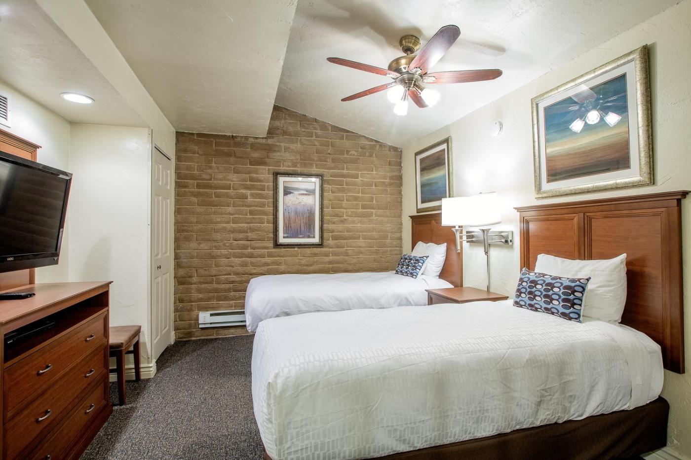 Two-Bedroom Apartment. This apartment features a King bed in one of the bedrooms and a Queen bed and a Twin bed in the other bedroom. A living room with a gas fireplace and a Queen sized sofa bed is also available. There is also a full kitchen and 2 full bathrooms. Please note that the price is based on 1 to 4 guests. Maximum occupancy is 6 (see Hotel Policies). ;