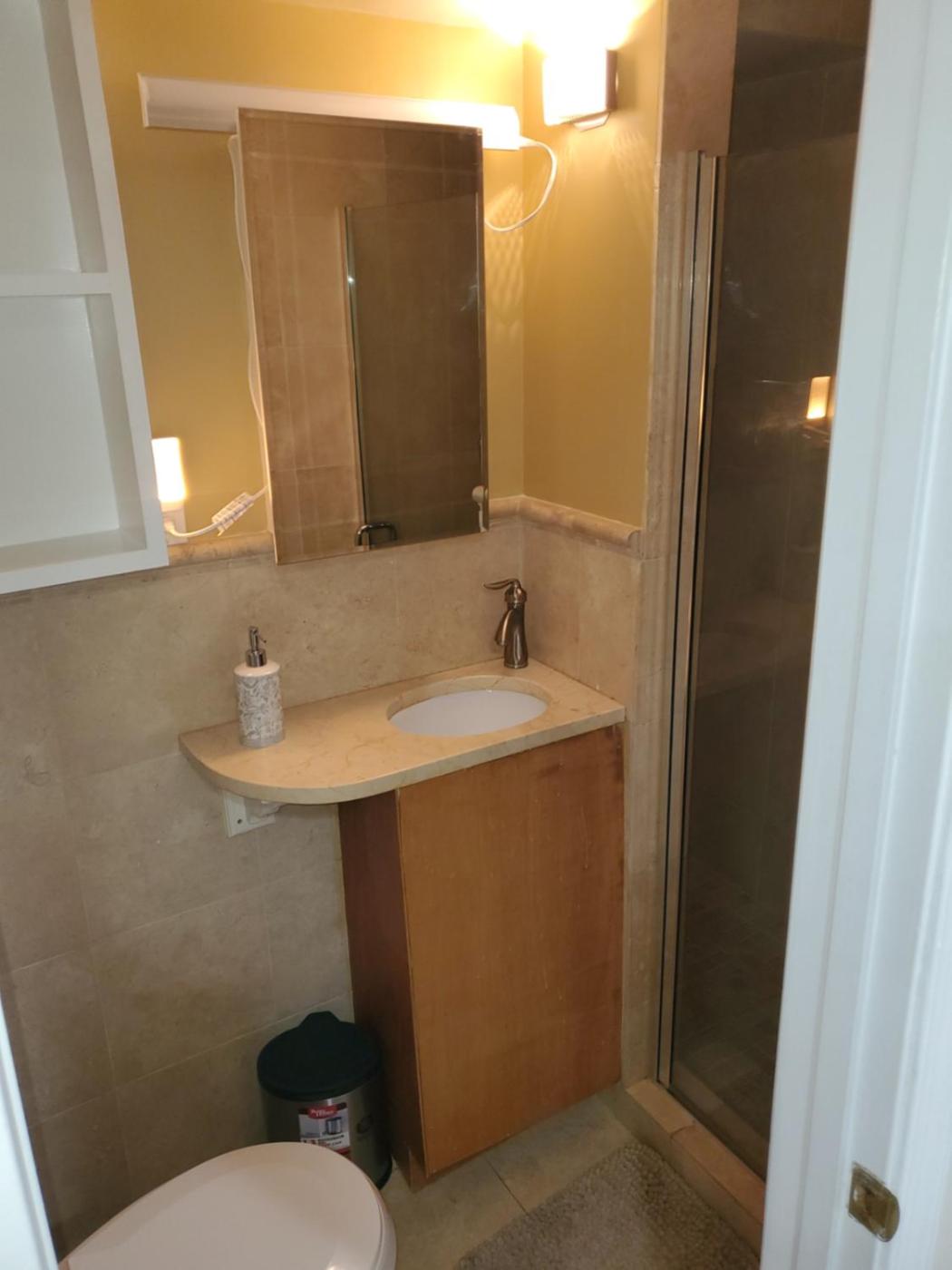 One-Bedroom Apartment. The air-conditioned apartment has 1 bedroom and 1 bathroom with a walk-in shower and a bath or a shower. Guests can make meals in the kitchenette that has a stovetop, a refrigerator and an oven. The apartment offers a washing machine, a sofa, a tiled floor, a flat-screen TV, as well as garden views. The unit has 1 bed.