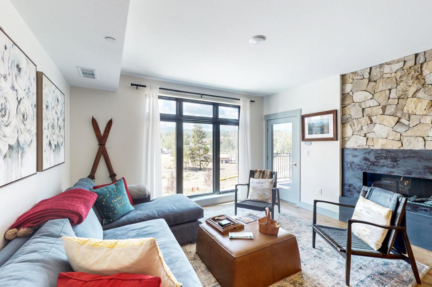 Guests can also warm themselves near outdoor fireplace after a day of skiing.